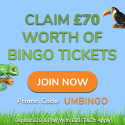 1st Deposit | £70 of Bingo Tickets + 10FS (Stampede) | UMBINGO | – | Play |
